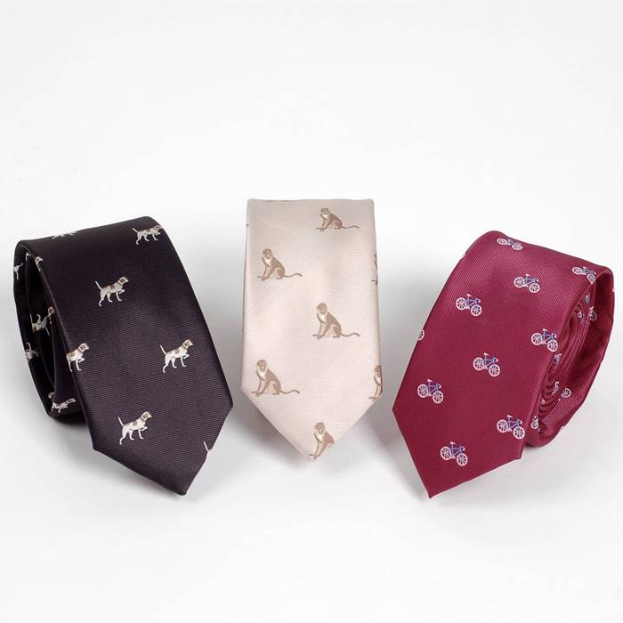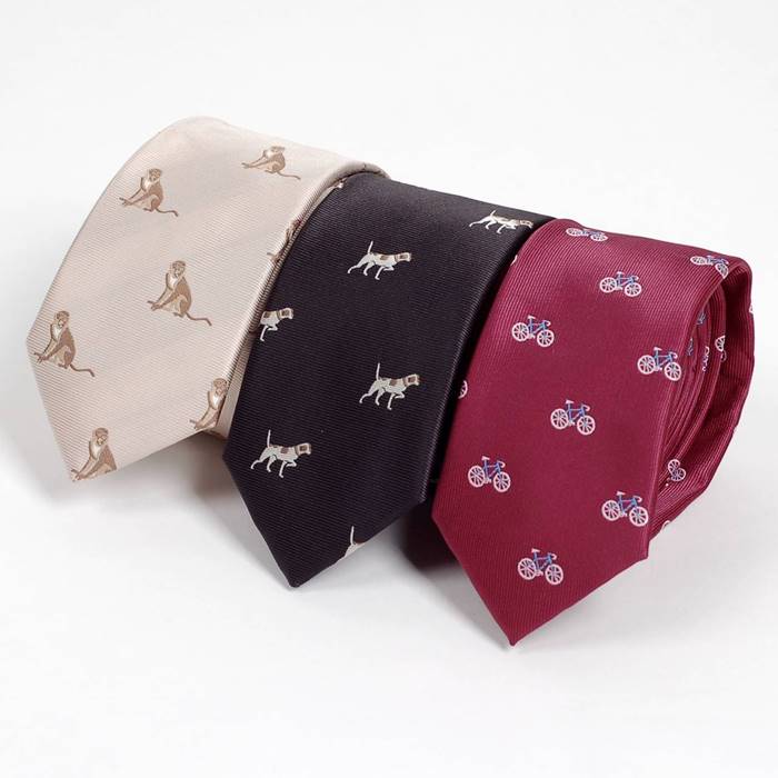 ◎ サイクル、犬、おさるの刺繍パターンが面白いネクタイです。